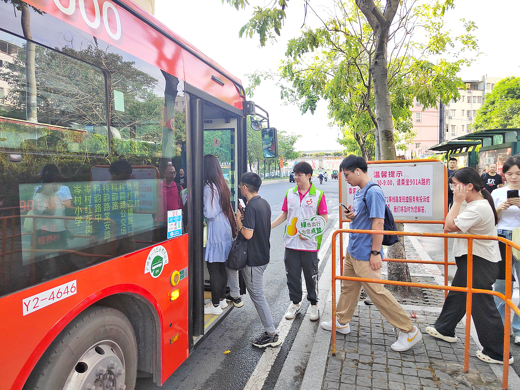 为营造友爱、文明、绿色、低碳出行氛围,倡导市民通勤外出优选公交,9月19日、20日,二分公司、三分公司组织党团员志愿者分别在岑村总站、黄埔港总站、赤岗公交总站等站点开展了“绿色出行,这厢有礼”志愿服务活动。党团员志愿者通过现场宣讲、派发宣传单等方式向乘坐公交的市民宣传绿色出行的意义和方式,呼吁市民做绿色出行的践行者,共同打造绿色、文明、健康、低碳的公交出行环境。