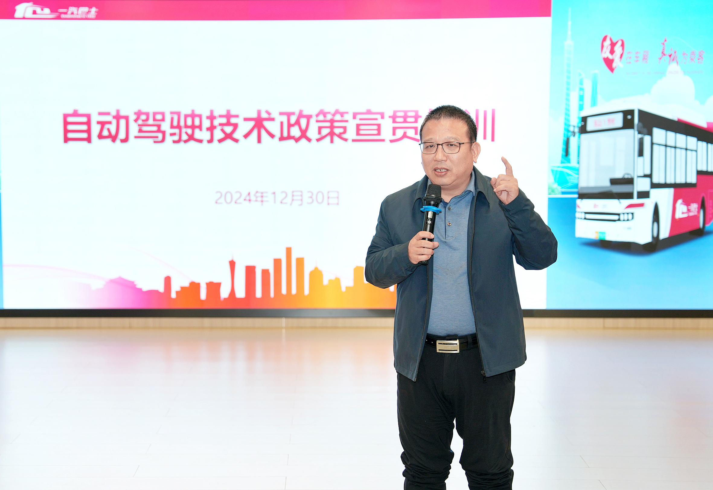 12月30日下午,公司邀请市智能网联汽车示范区运营中心吴征明主任、广东工业大学汽车工程系冯桑主任在花港礼堂开展自动驾驶技术政策宣贯培训。公司领导、各单位和部门中层管理人员、主管和科长约60人参加。