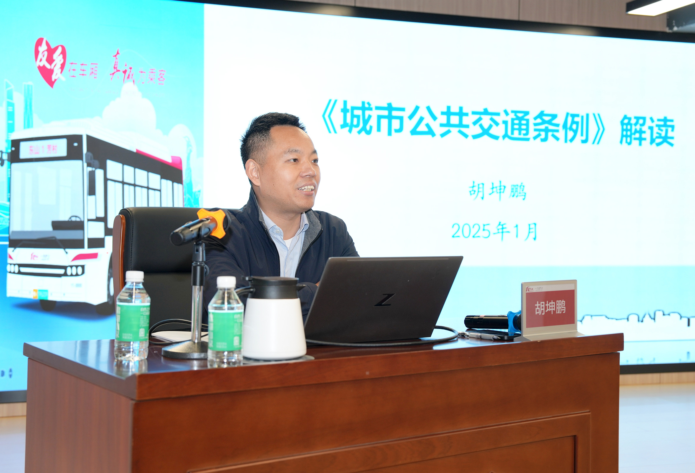 1月2日下午,公司举办了《城市公共交通条例》宣贯培训。公司领导、中层管理人员、助理、主管和科长以及其他管理人员共计约180人通过现场会议与视频会议相结合的形式参加了培训。会议邀请到了广东交通职业技术学院副教授胡坤鹏,为公司深入解读了《条例》起草的背景与意义、核心内容与要义,分享了草拟广东省公共交通条例核心内容,以及对公交行业未来发展趋势的观点与思考。下一步,各部门、单位要紧跟国家法规、政策的变化,认真细读《条例》,及时调整工作模式和经营策略,学以致用,知学并进,实现公司高质量发展,努力做到“创收、减亏、提服务、去库存”。