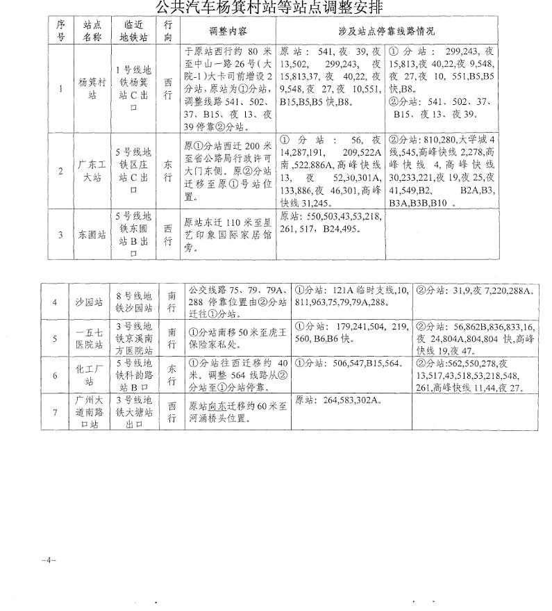 一、调整公共汽车杨箕站等7个站点,具体调整安排详见附件。