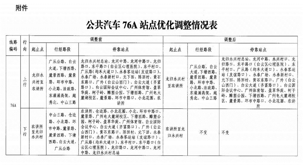 关于优化调整公共汽车76A路线的通知